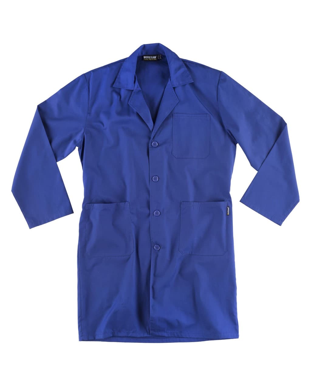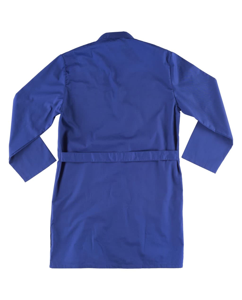 Bata de caballero con cuello solapa y cierre central de cuatro botones al tono. Un bolso de pecho y dos bolsos laterales de plastón. Manga larga. Cinto en la espalda.