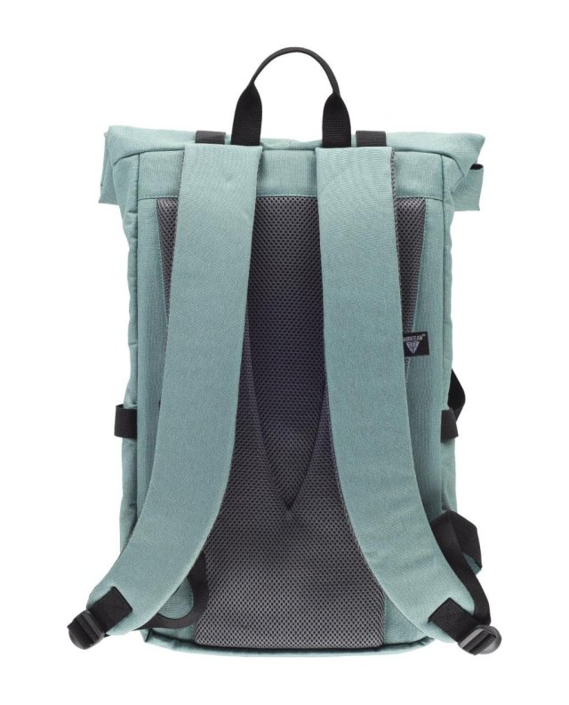 Mochila enrollable, con capacidad de 25l. Un compartimento de gran capacidad con cierre de hebillas. Compartimento en el interior para ordenador portátil. Un bolsillo frontal con cierre de cremallera. Ajustes en los laterales. Asa en la parte superior. Espalda acolchada. Detalles reflectantes.