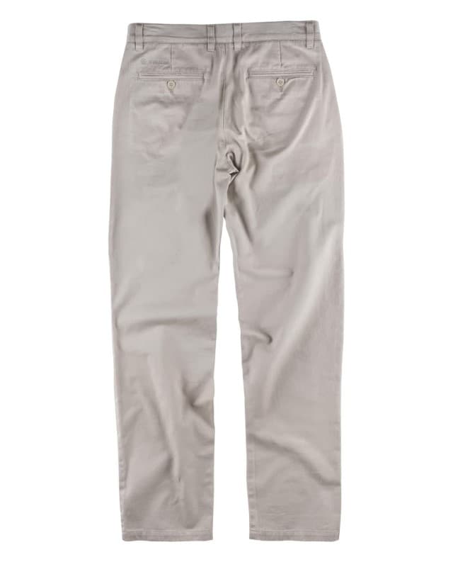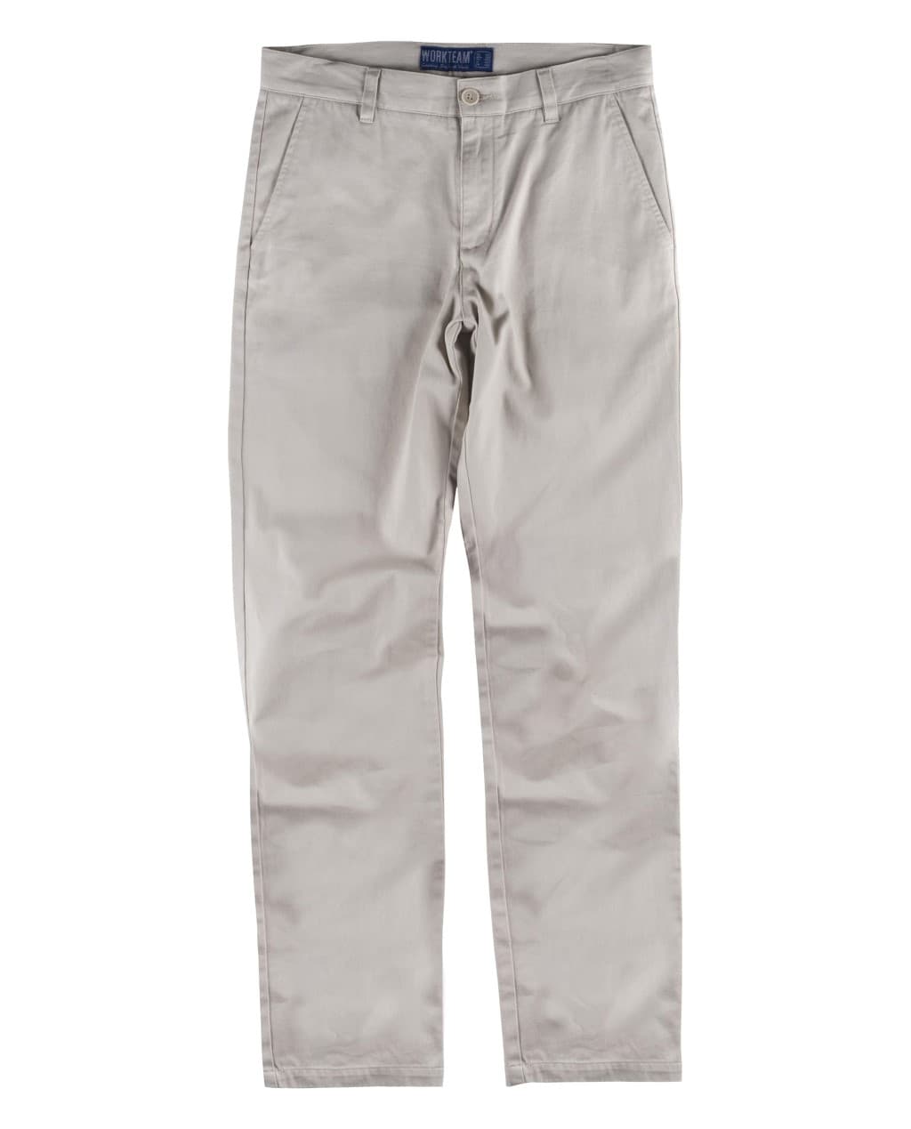 Pantalón de señora recto de algodón con dos bolsos de abertura inclinada en los costados. Dos bolsos traseros interiores con cierre de ojal y botón. Trabillas. Cierre de botón y bragueta de cremallera de metal.