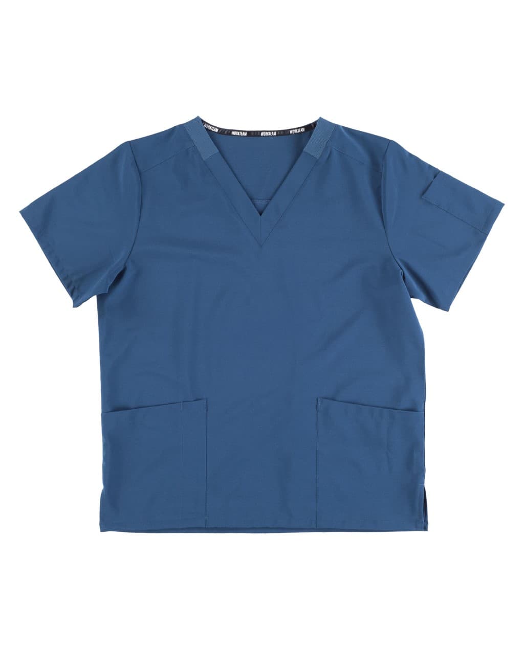 Casaca de manga corta con tejido elástico. Cuello a pico con elástico. Dos bolsillos laterales de plastón. Bolsillos para bolígrafos. Un bolsillo en manga. Canesú en espalda. Aberturas en los costados.