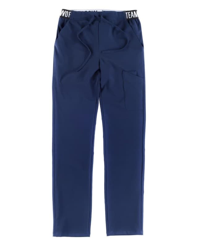 Pantalón unisex con tejido elástico. Dos bolsos de abertura inclinada en los costados. Un bolsillo doble de plastón en pernera. Un bolsillo trasero de ojal. Elástico en la cintura y ajuste de cordón.